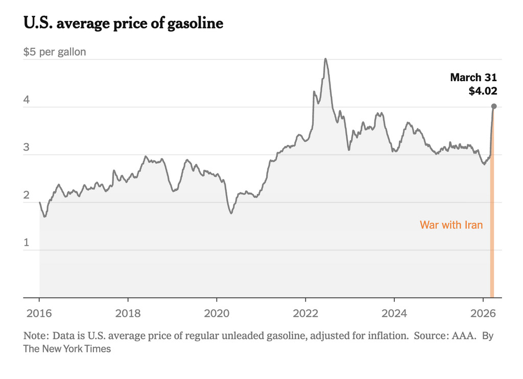 At the Federal Reserve’s March 17th meeting, Chairman Powell spoke. “Today, the FOMC decided to leave our policy rate unchanged. We see the current stance of monetary policy as appropriate to promote progress toward our maximum-employment and 2 percent inflation goals. Our monetary policy actions are guided by our dual mandate to promote maximum employment and stable prices for the American people. But the implications of events in the Middle East for the U.S. economy are uncertain. In the near term, higher energy prices will push up overall inflation, but it is too soon to know the scope and duration of the potential effects on the economy.” On March 30th, Powell said “Now we’re facing events in the Middle East which will certainly affect gas prices, and we feel like our policy is in a good place for us to wait and see how that turns out. Energy shocks have tended to come and go quickly. So the tendency is to look through any kind of a supply shock. It’s one of those times where you get a series of supply shocks: first the pandemic, then the much smaller one from tariffs, and then we’re getting now an energy shock. No one knows how big it will be. It’s way too early to know.” https://www.federalreserve.gov/mediacenter/files/FOMCpresconf20260318.pdf
